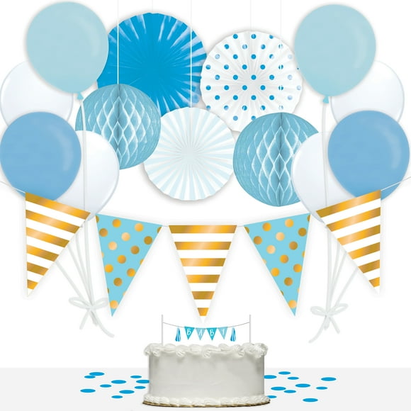 Baby Shower Decorations for Boy - 82PCS Jumbo Transparent Baby Block Balloon Box with Letters Includes White Blue Gray Baby Blue Balloons RegalCreationDesigns 5 out of 5 stars 654 2699 FREE shipping Bestseller Add to Favorites Girl Baby Shower Water Bottle Labels. Youll have a great choice of decorative lighting from fairy lights to pastel paper lanterns and beautiful candles to brighten up the party whether its being held indoors or outside. Way to Celebrate Boy Baby Shower 36-Piece Decorations Kit Blue Gold.
