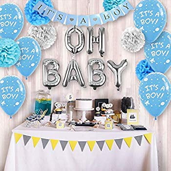 There are a lot of beautiful themes for both baby girls and baby boys. Choose from dozens of cute baby shower themes for boys offering everything from tableware and decorations to baby shower games. Whale baby shower banner Its a boy whale shower decorations whale garland whale banner Ahoy Its A Boy - choose your colors. 852 1999 FREE shipping. Word Scramble Baby Blue Chevron Baby Shower Games 20-Pack. Way to Celebrate Boy Baby Shower 36-Piece Decorations Kit Blue Gold. Nov 2 2015 - Explore Baby Shower Ideass board Boy Baby Showers followed by 1974 people on Pinterest. Celebrating new bundles of joy is one of lifes greatest pleasures. Keencopper Elephant Baby Shower Decorations for Boy Or Girl 4 Pcs Baby Blocks Clear Balloon Boxes with BABY A-Z Letters for Baby Shower Decor Gender Reveal Party Supplies Birthday Party Backdrop 47 out of 5 stars 115.