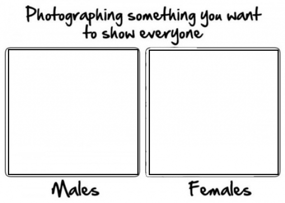 Females image is top comment in rpics thread. We are friends after all. Parodies of the comic have been widely circulated within various meme communities with many substituting the woman with other types of people. Post Comments Atom Blog Archive. Home Funny Facts Photographing Something You want To Show Everyone - Males vs Females. Or if you have a pocket watch that your grandfather used every day pop it open to show the gears that turned the hands. Photographing something You want to show everyone.